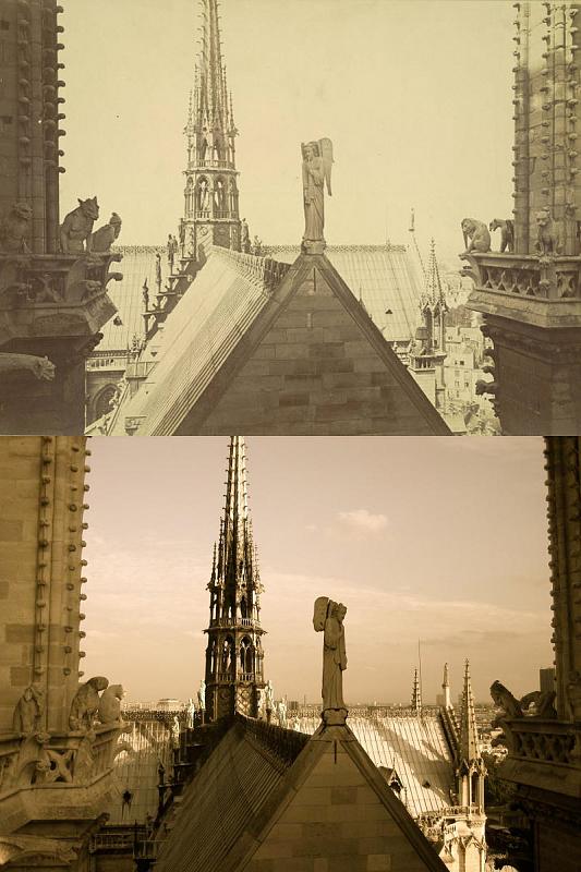 With time and attention, photographs can be viewed in aggregate, the future historian can pull from concurrent sources. Our contemporary photographic collecting tools, as in the case of Flickr’s Galleries and Albums, which allow curation of others people’s photographs, can come to resemble a sort of photomontage. Rosalind Krauss, writing on the photomontages of Hannah Höch and other Dadaists in The Optical Unconscious, argues that the medium forces a dialogue between images, creating unexpected connections and breaking the linearity of traditional visual narratives thus opening space for political critique. The Notre Dame gallery disrupts the throughline of the ‘official’ imagery of the event, creating a space for discourse of other elements besides the central action (e.g. gender, capitalism, urbanism).